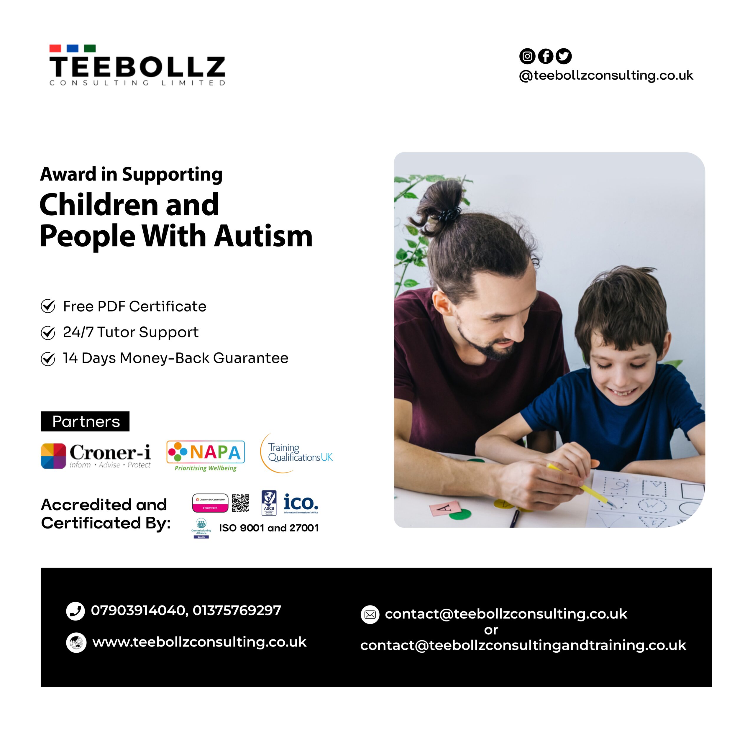 At Teebollz Consulting Limited, the Safeguarding Children Certificate course was invaluable. It equipped me with essential knowledge and skills to ensure children's safety. I highly recommend it to anyone working with children. Teebollz Consulting Limited's dedication to excellence is evident in their courses.