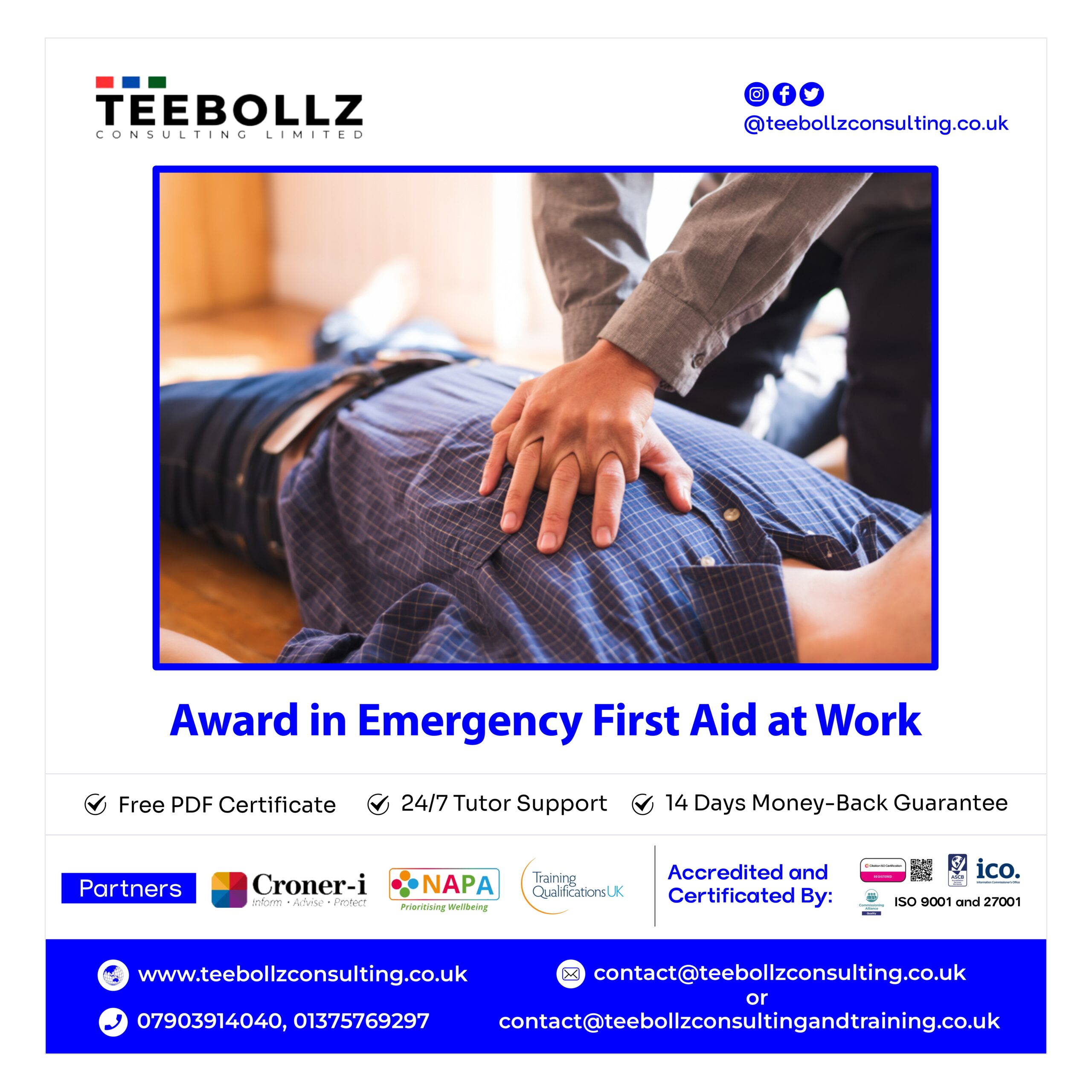 At Teebollz Consulting Limited, the Pediatric First Aid at Work course was comprehensive and practical. It equipped me with essential skills and confidence to handle workplace emergencies effectively. Highly recommended for professionals in any industry. Teebollz Consulting Limited sets the standard for excellence in training.