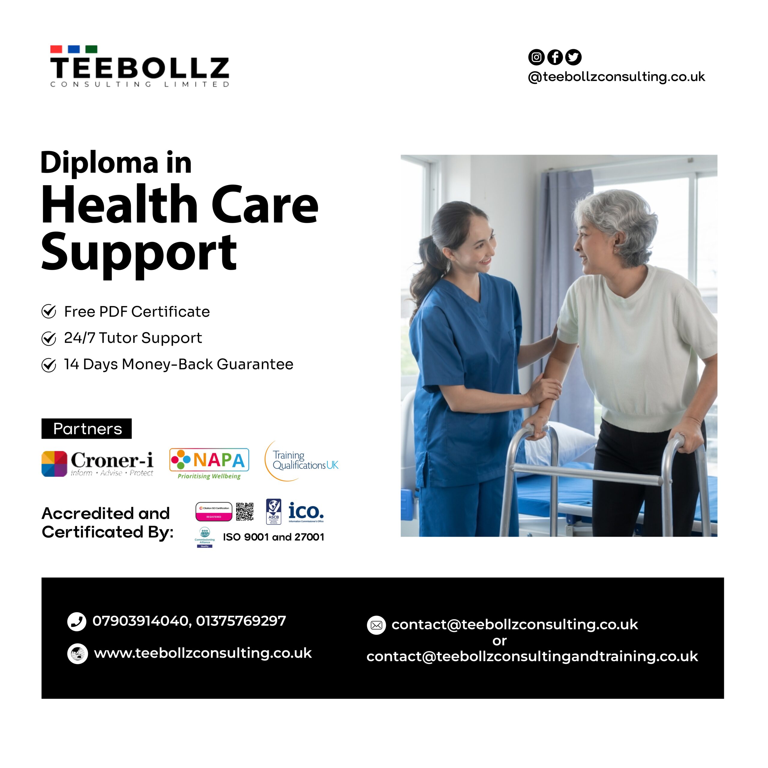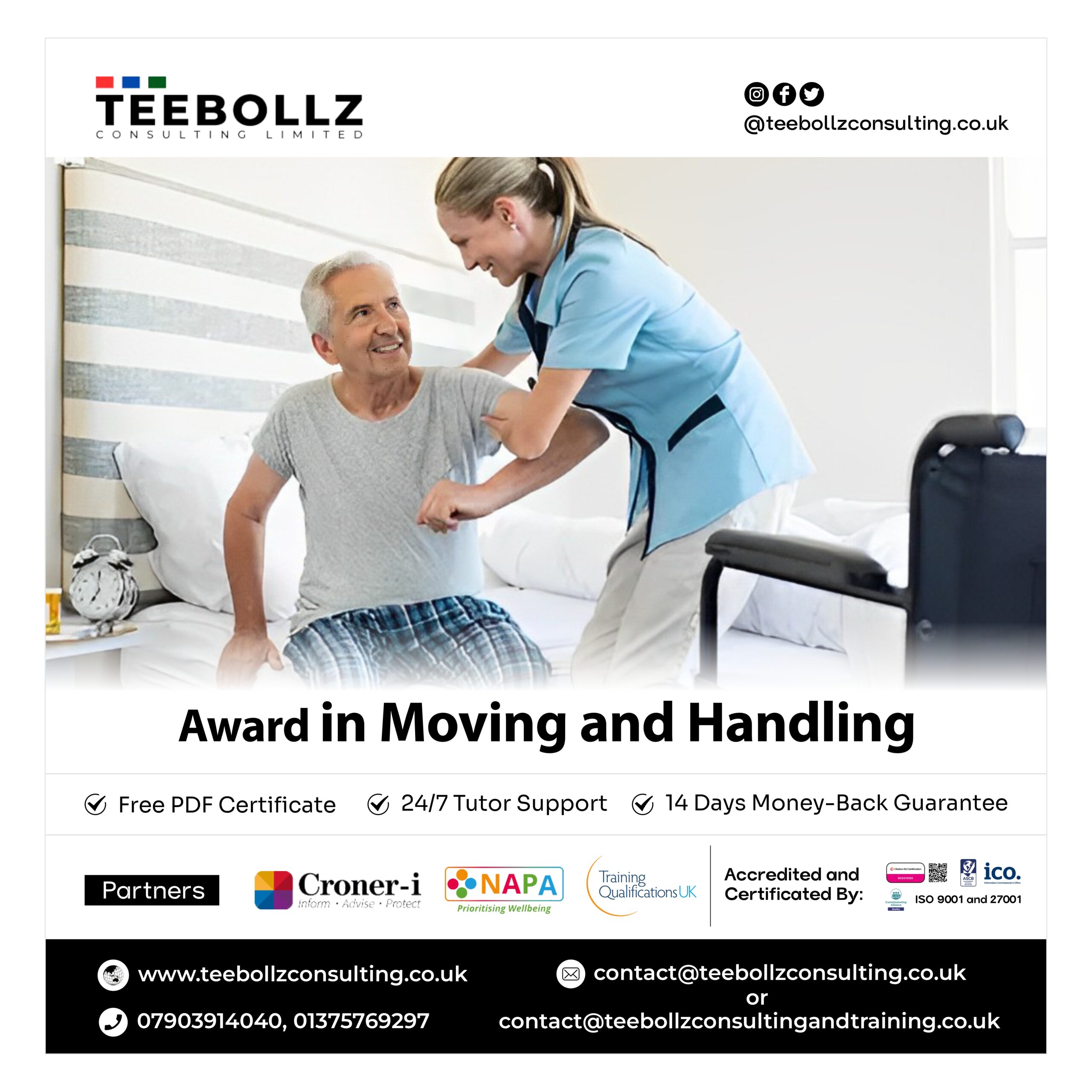 Established in the latter months of 2016, Teebollz Consulting Limited has thrived for nearly a decade, offering a diverse array of national vocational courses. From Health and Social Care to Construction, Quality Assurance, and Licensed Security courses, we provide comprehensive training. Our programs grant certifications, diplomas, and awards upon completion, empowering individuals to excel in their chosen fields.